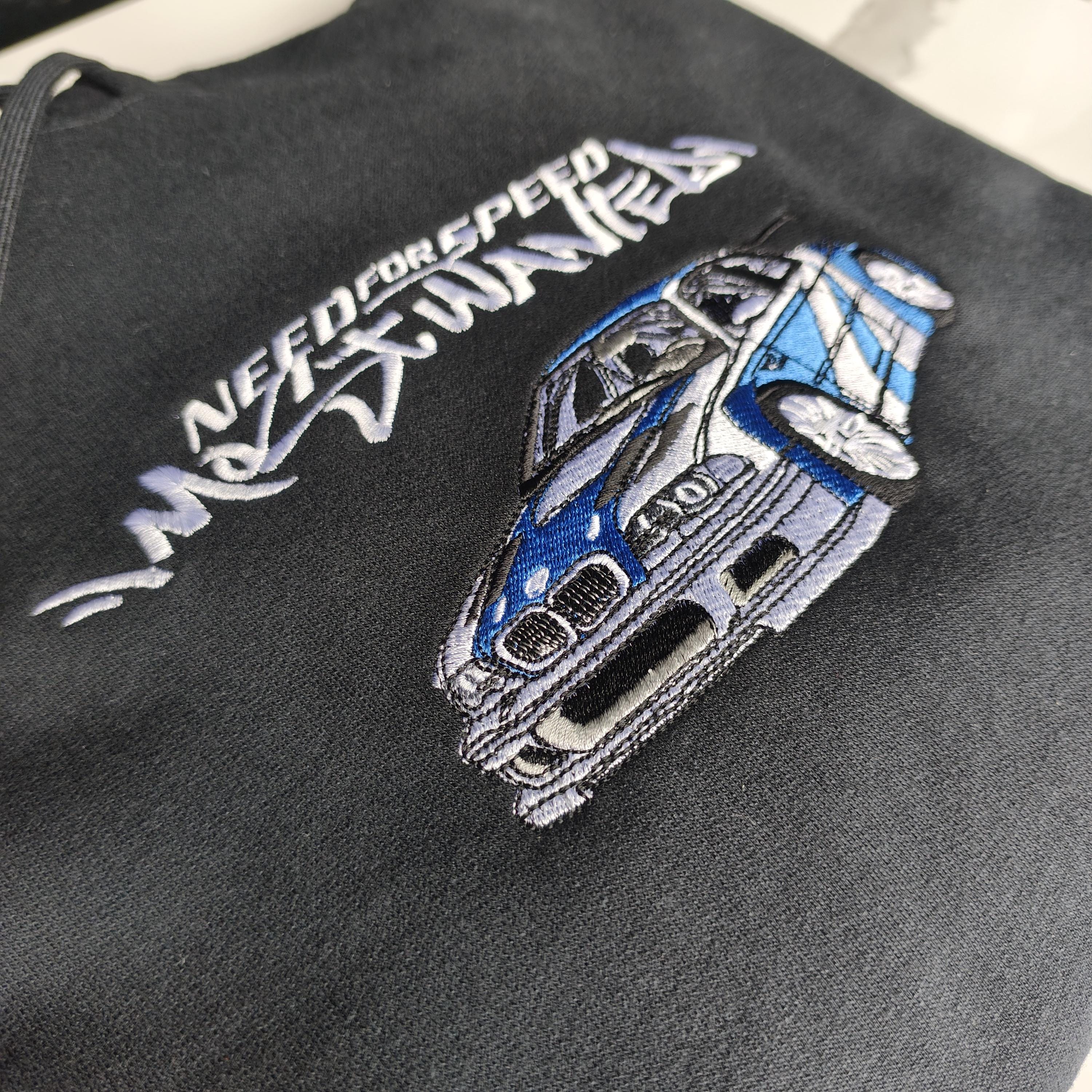 Need For Speed Most Wanted BMW E46 M3 GTR Embroidery Hoodie. The “Blacklist” design is also embroidered on the back of the hoodie.