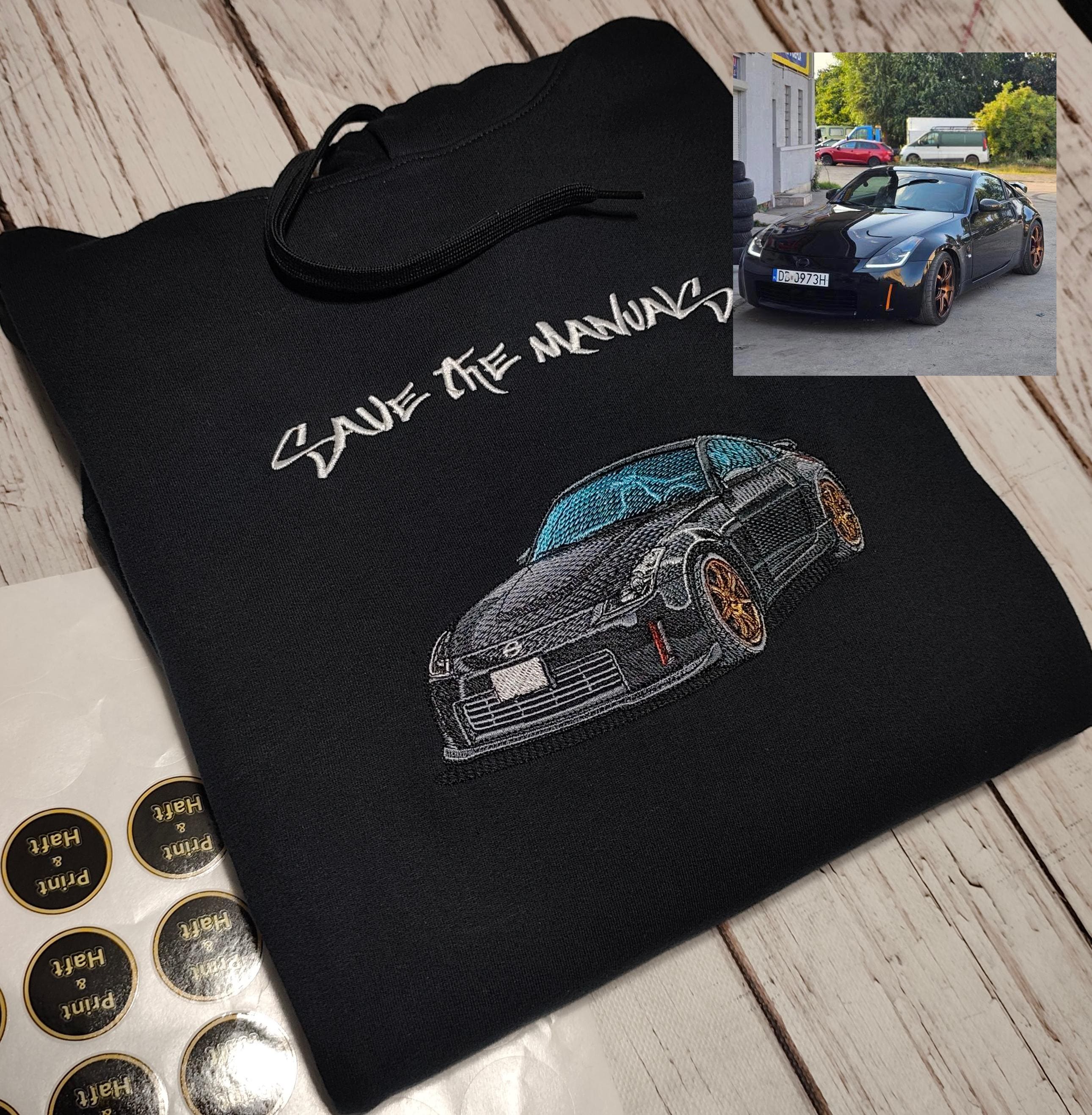 Turn your car into a wearable piece of art. This custom embroidered hoodie is made entirely to order, featuring your own car, recreated with exceptional attention to detail and stitch precision.