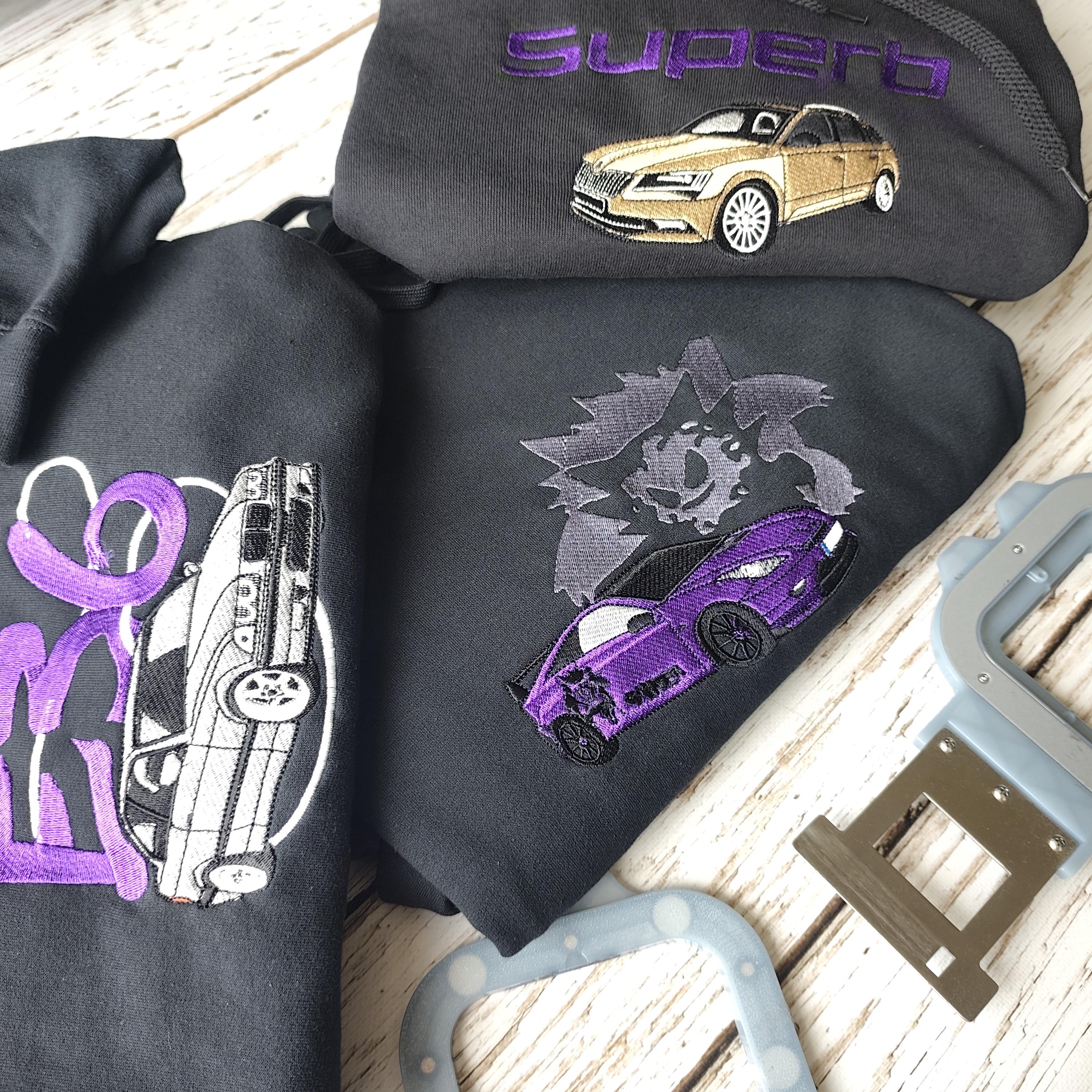 Turn your car into a wearable piece of art. This custom embroidered hoodie is made entirely to order, featuring your own car, recreated with exceptional attention to detail and stitch precision.