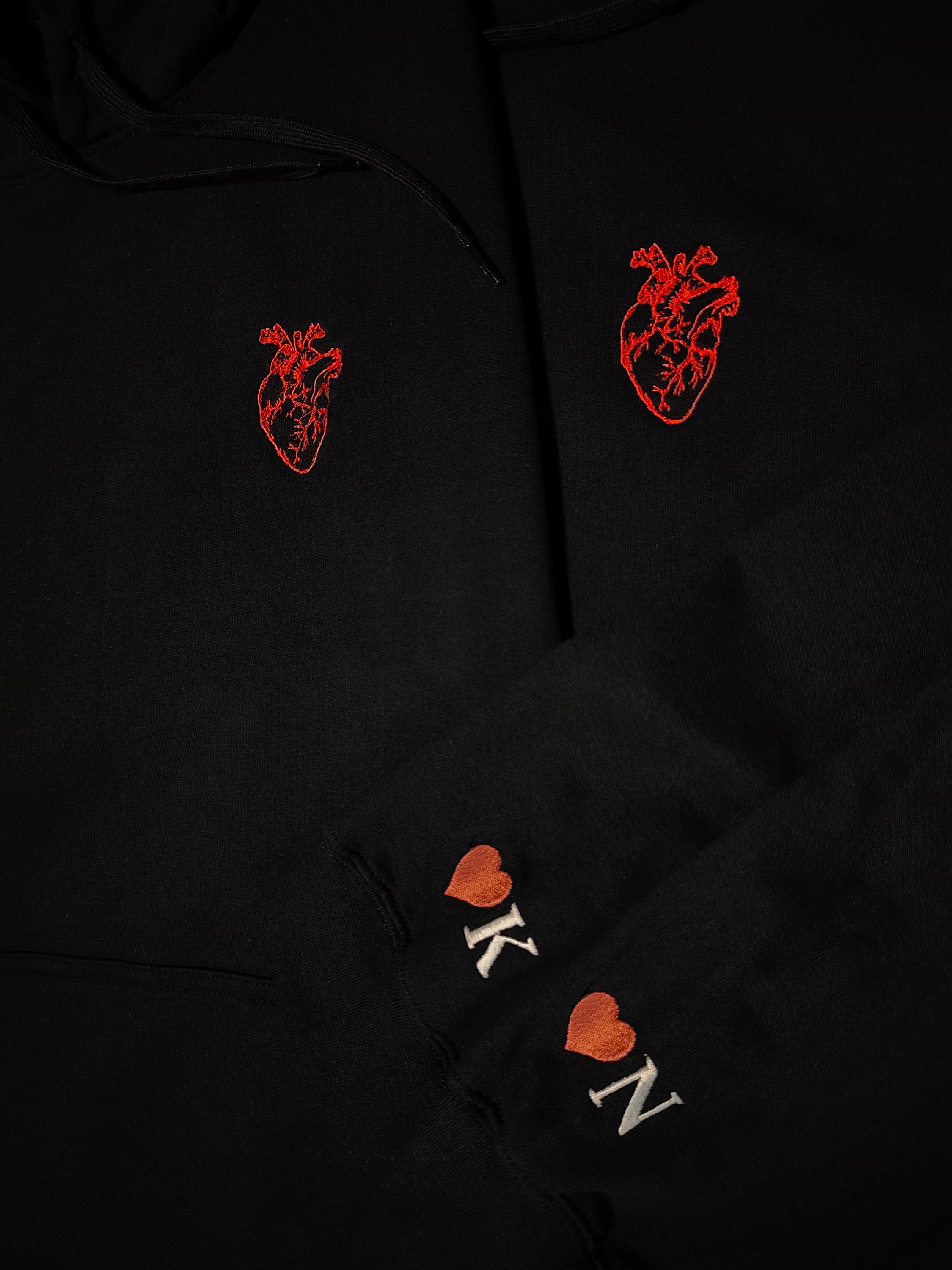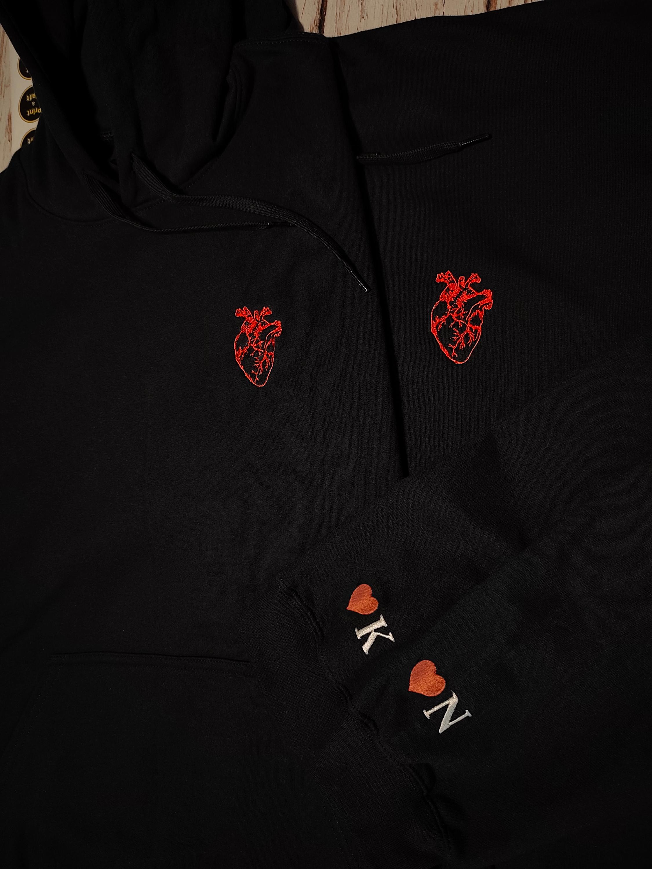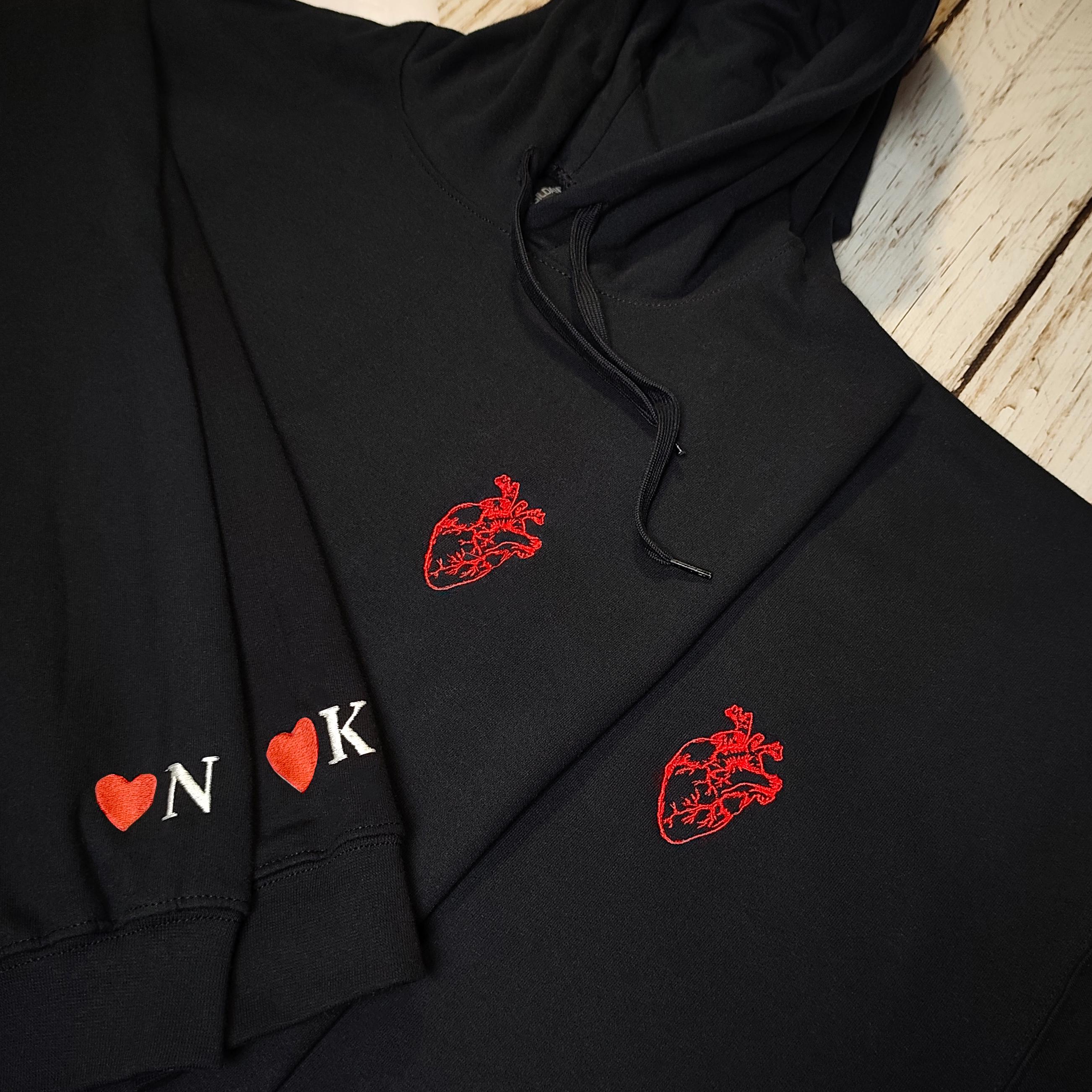 Custom Embroidered Initial Heart Sweatshirt,Custom Embroidered Initial Heart Hoodie, Personalized Couples Gifts, Valentines Couple Initials, Initial On Sleeve, Valentine's Day Gift, Gift for Her, Valentine's Day Gift, Christmas gift