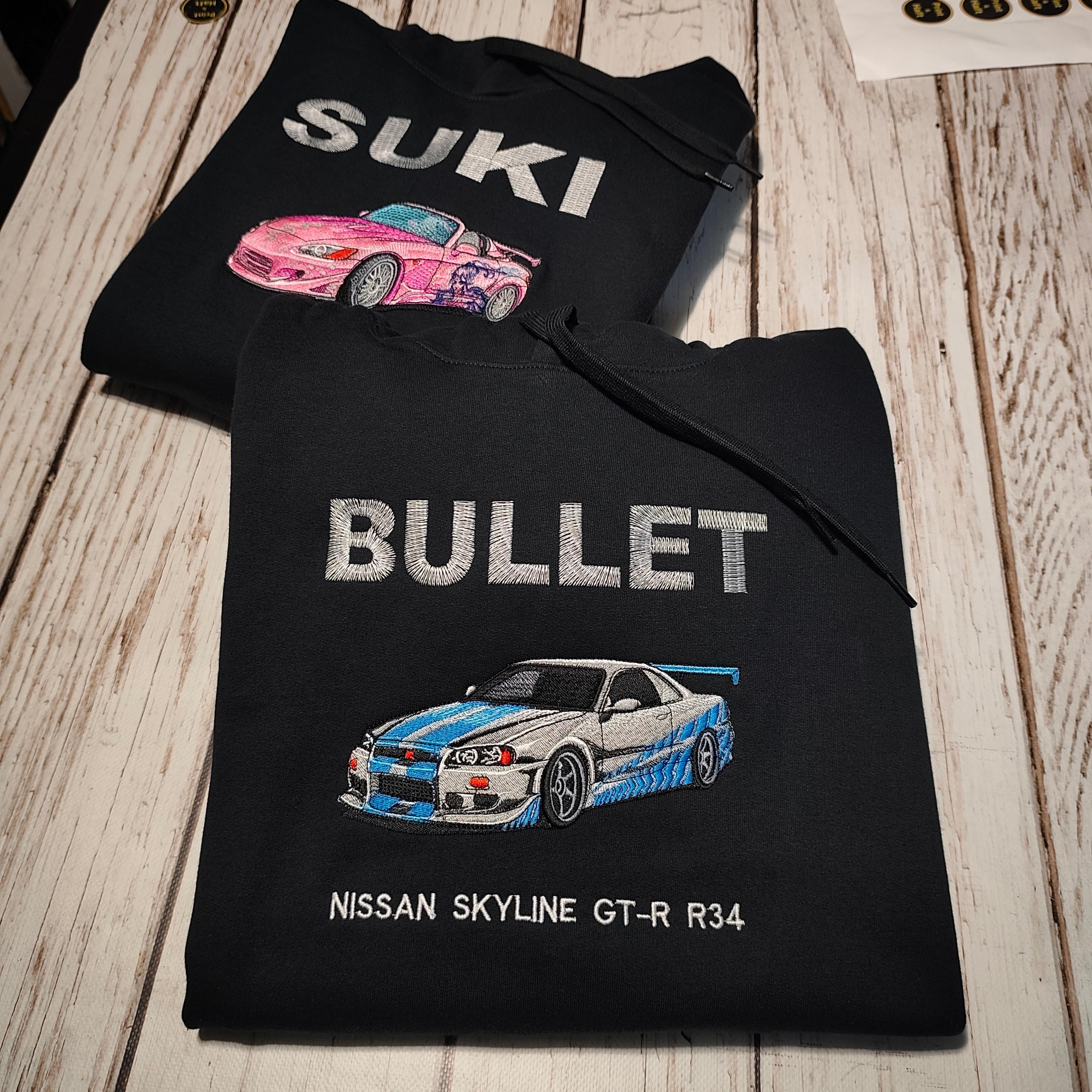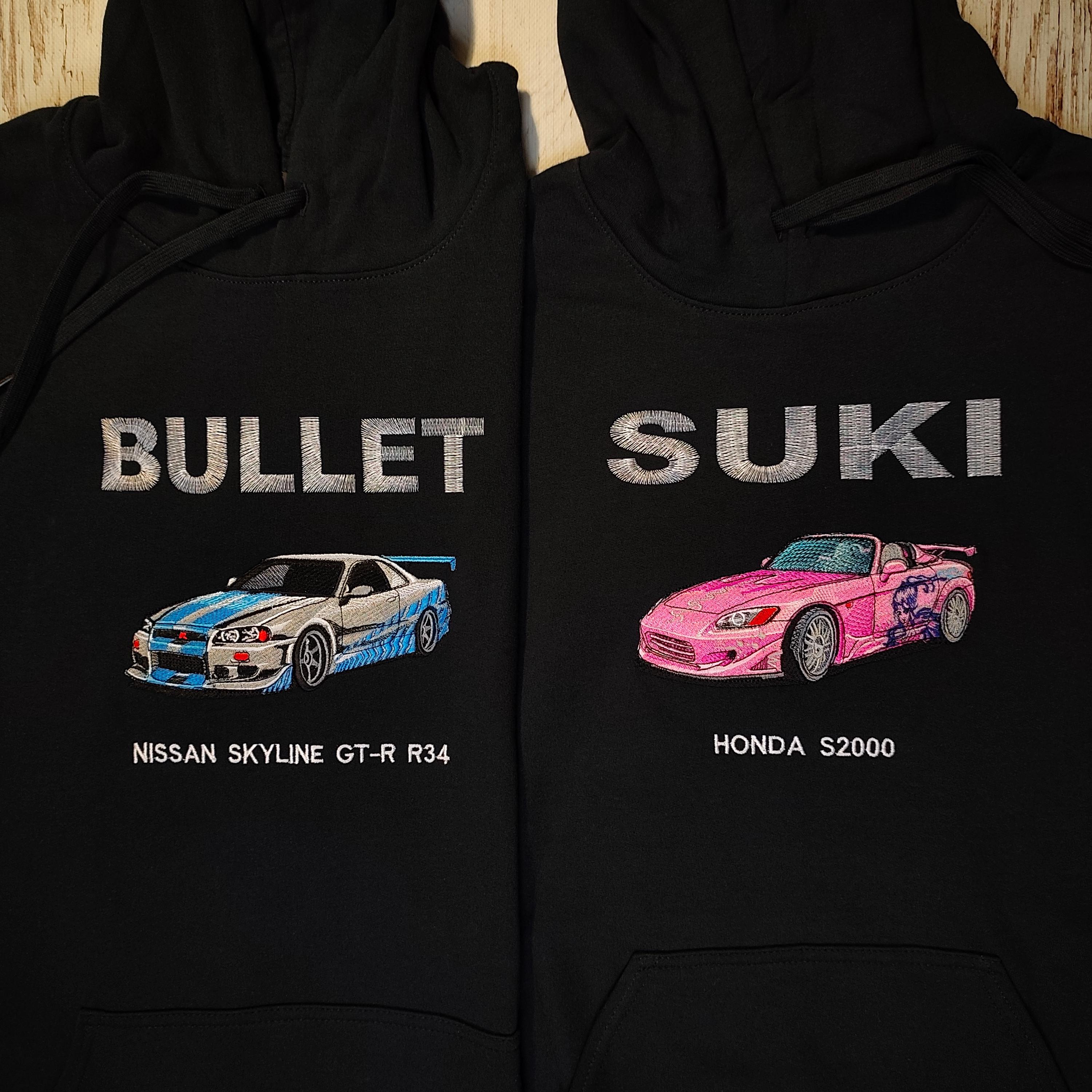 Fast and The Furious Cars Embroidery hoodie | FF | Nissan Skyline | Bullet | female dogs | Honda s2000