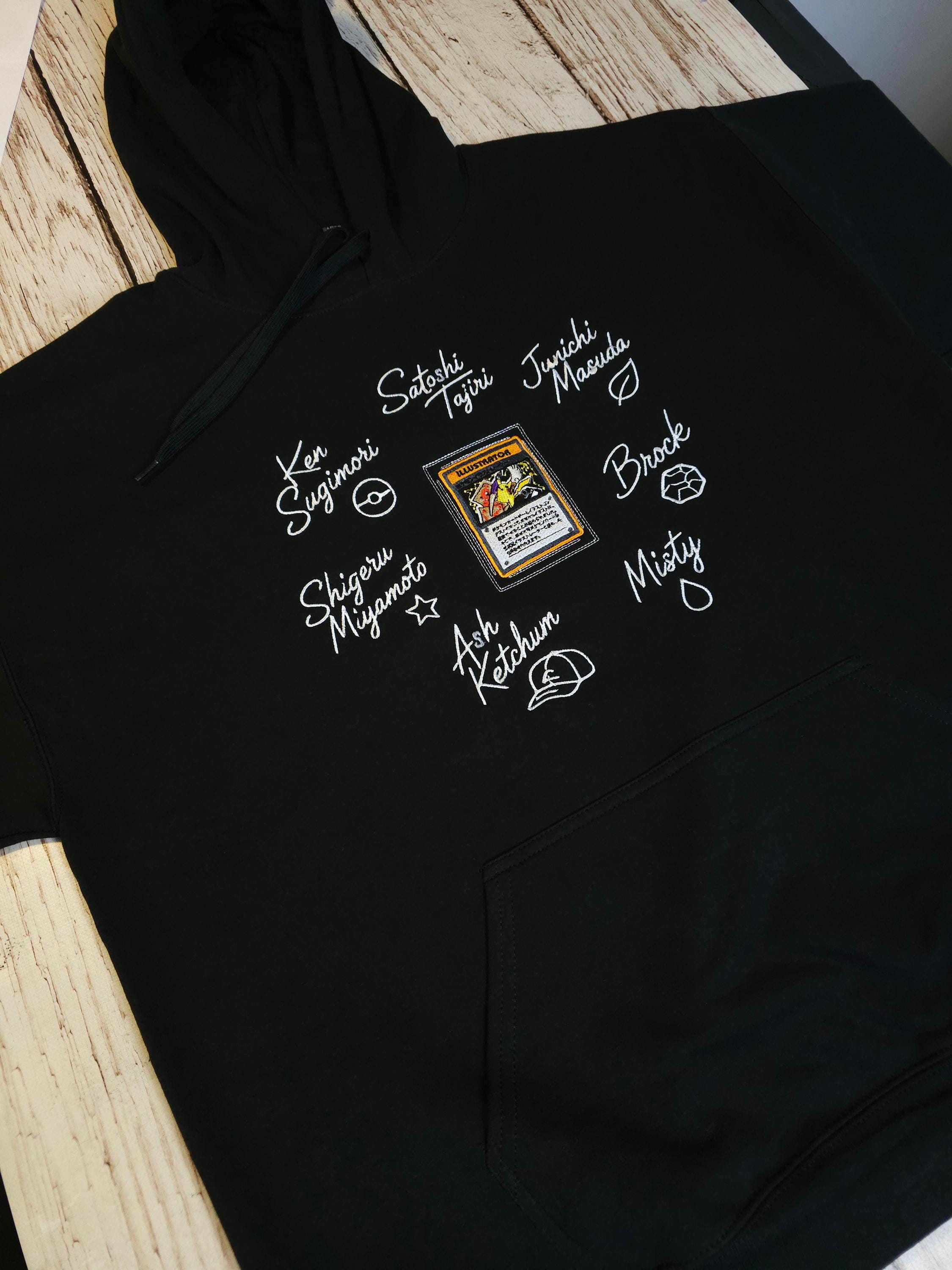 This hoodie is inspired by the world of Pokémon and the iconic trading card game. It captures the spirit of adventure, collecting, and strategy that fans have loved for years. The design blends nostalgic elements with a modern style, making it perfect for both longtime collectors and new trainers. Whether you're battling, trading, or just showing your passion, this hoodie brings a piece of that universe into your everyday look.